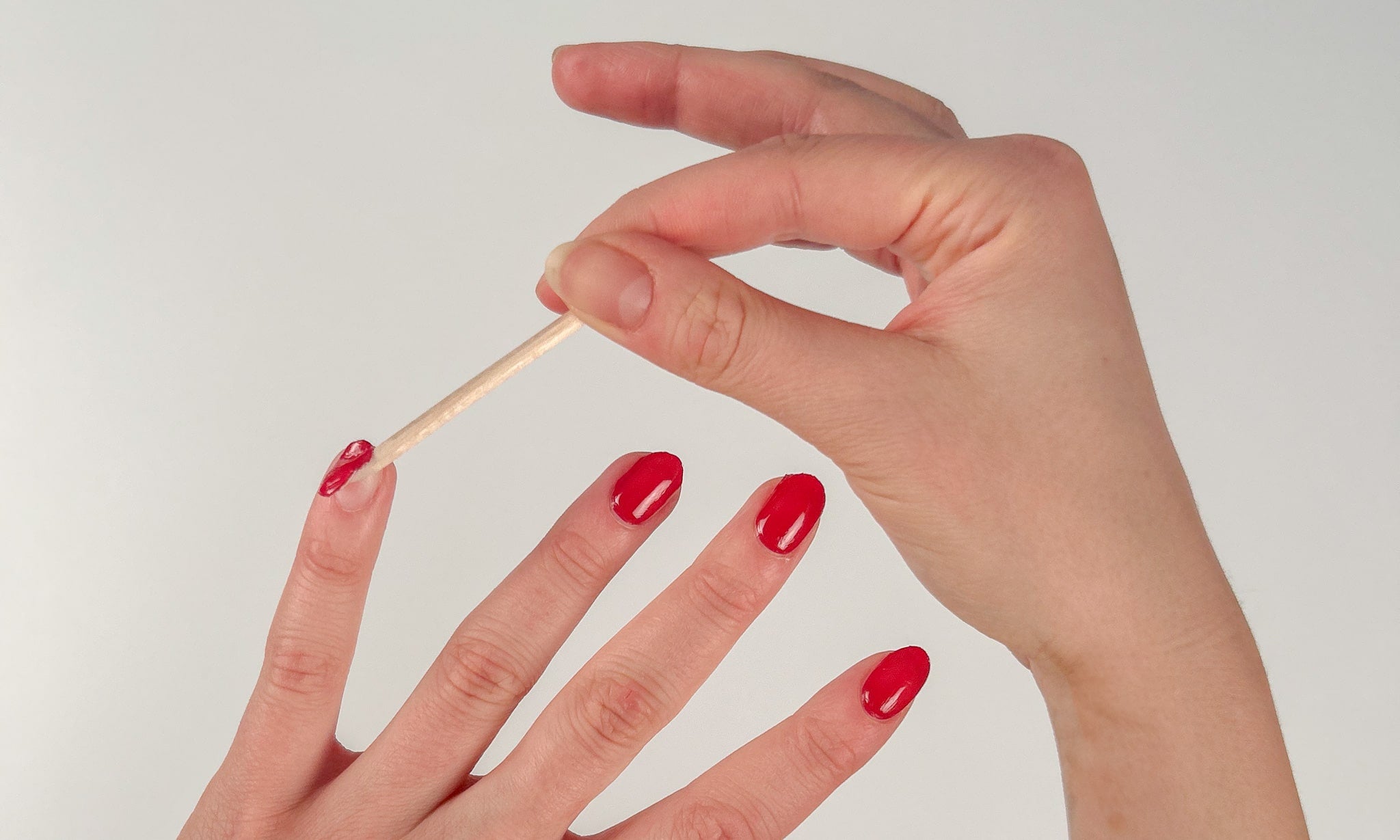 Tvätta händerna och rengör naglarna med en alkoholservett för att ta bort olja och smuts. Skjut försiktigt tillbaka nagelbanden för en jämnare applicering.