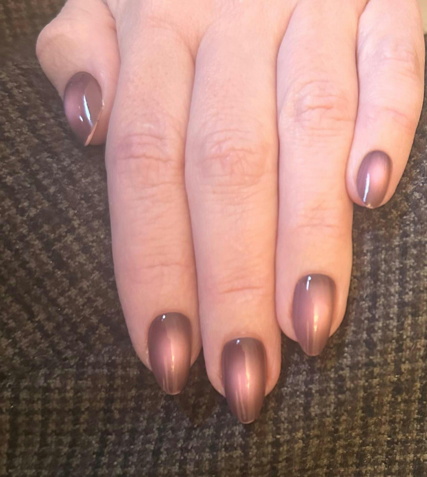 Jättefina naglar som passar i såväl formella sammanhang som på hemmafester. Mauve-tonen var fantastiskt lättburen. Beroende på belysning skiftar färgen mellan kall nude/greige och en dämpad kall syrénton.