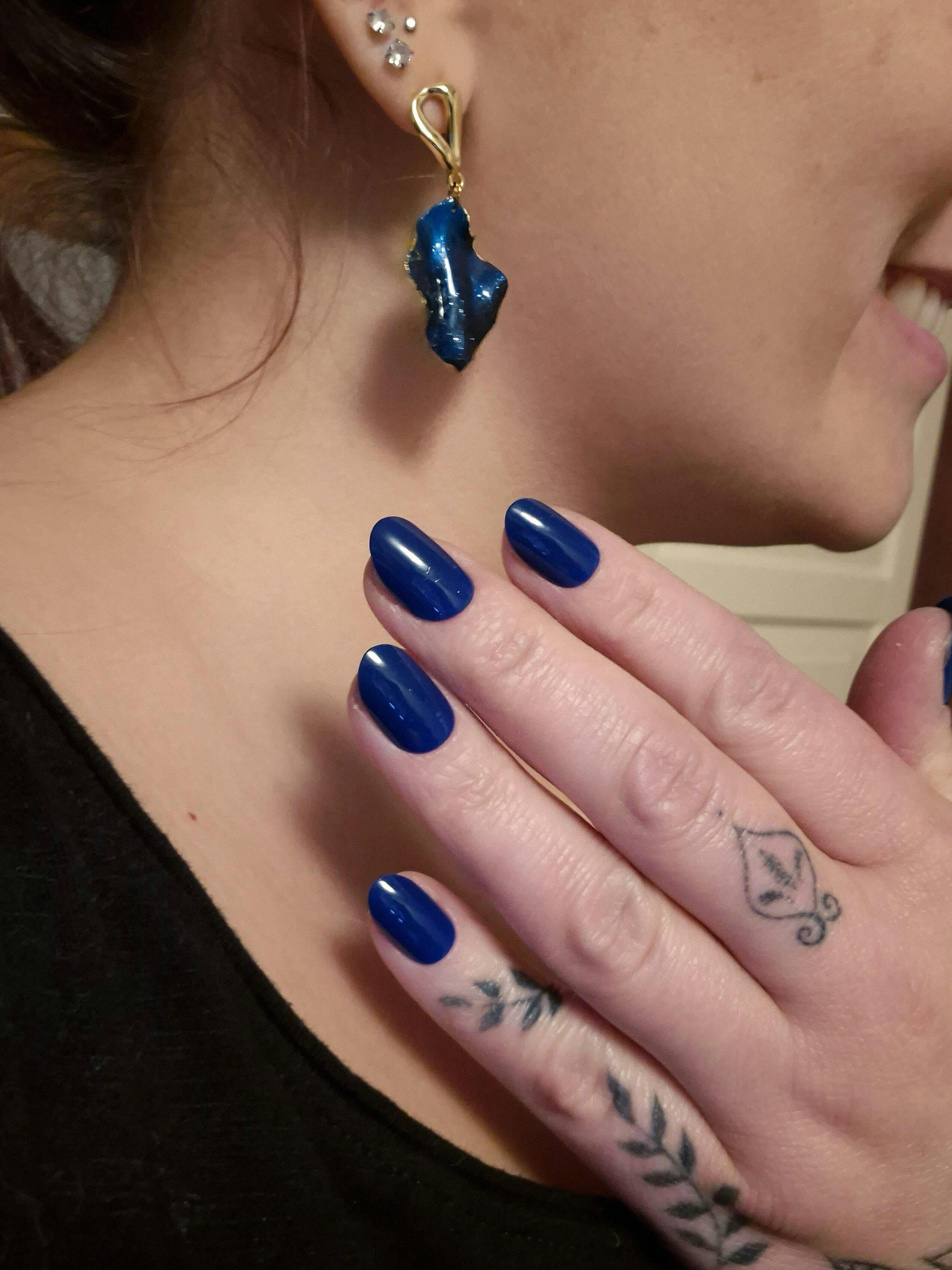 Fina naglar med vacker färgskiftning. Jag har ett arbete där jag klär mig formellt och längden passar bra. En varning dock; den mörka nyansen kan lätt slitas bort fort, särskilt vid nagelns kanter. Använd överlack och fyll på ofta för att skydda mot slitage. Dessa vill man kunna använda länge.