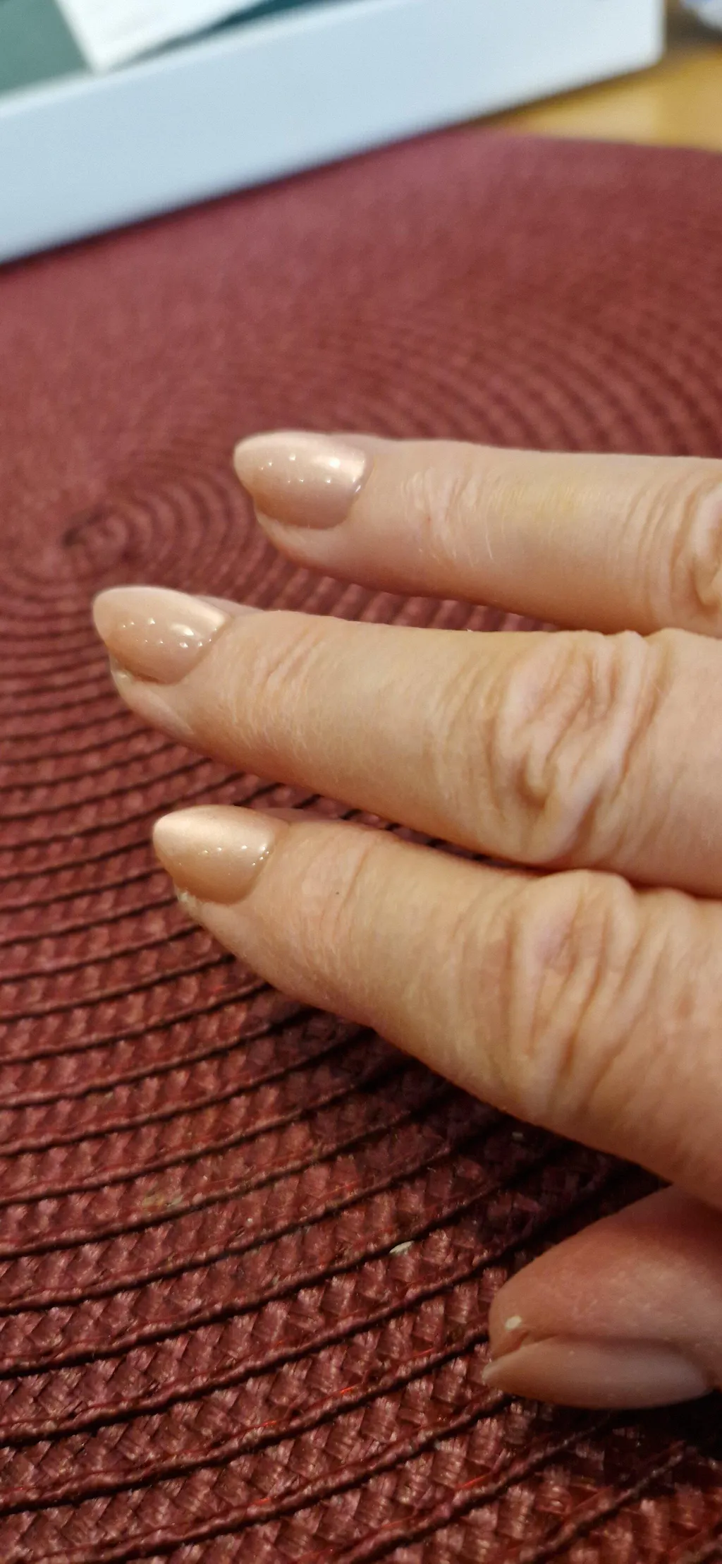 Älskar dem. Smalnar av väldigt tidigt så mina nagelkanter syntes något, men bara om man synar noga. Underbar färg. Jag filade av spesten, gillar inte kloformen, blev så snygga.