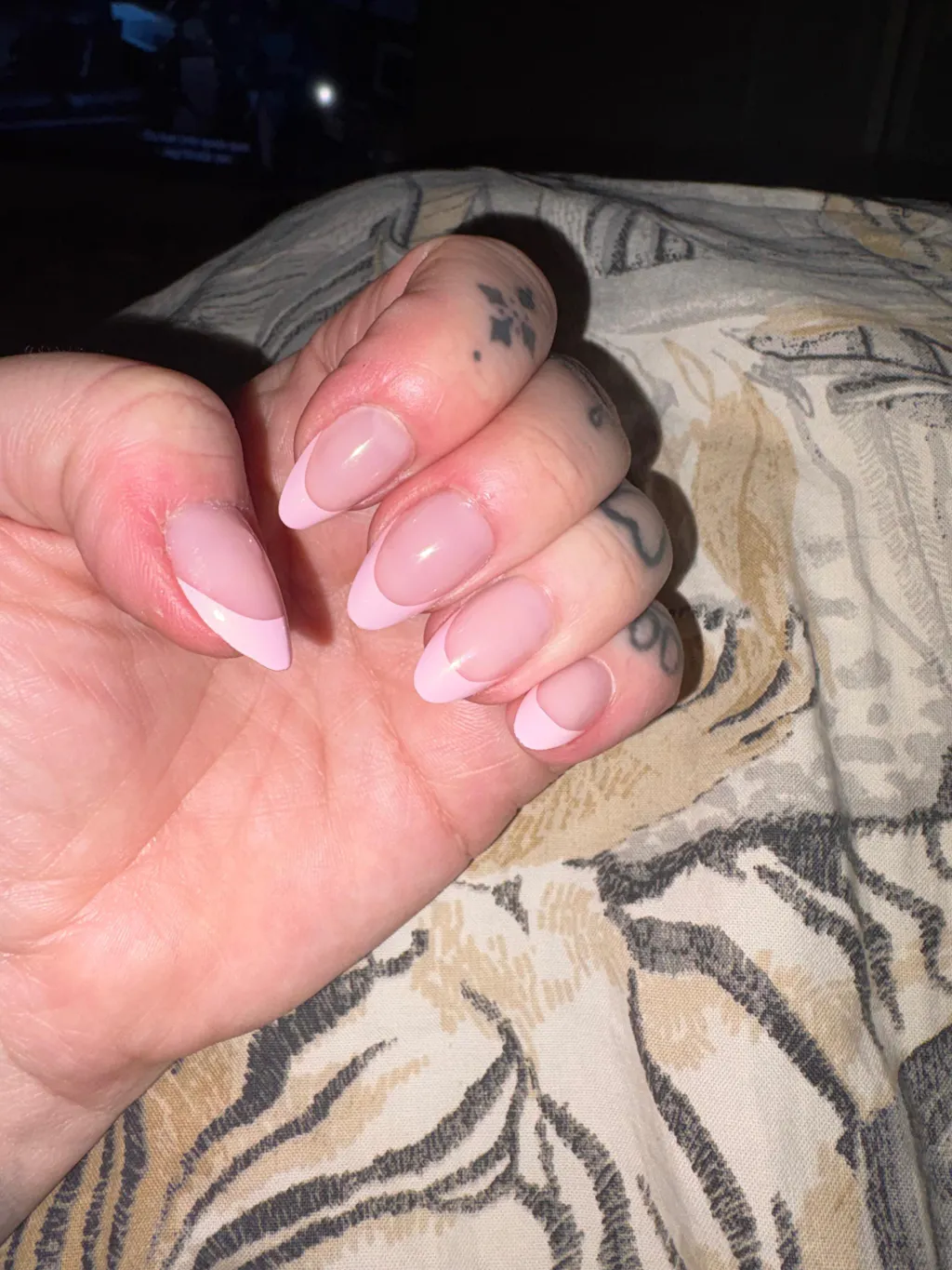 Jättefina naglar, men tyvärr alltför välvda för att passa mina naglar. Det gör ont, vet ej om jag vågar låta dem sitta kvar.